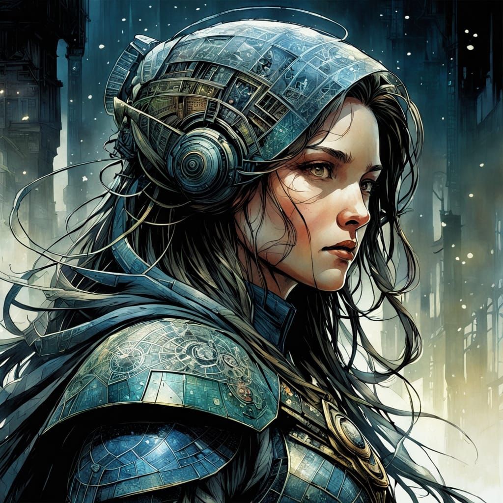 This image showcases a mesmerizing blend of fine details and intricate patterns, reminiscent of traditional comic book art and the works of various artists known for their meticulous techniques.