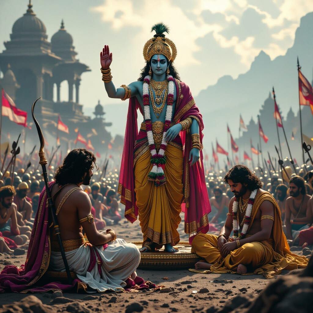 Easily generate your own images of Krishna as the supreme teacher, just like this one. Free and simple!