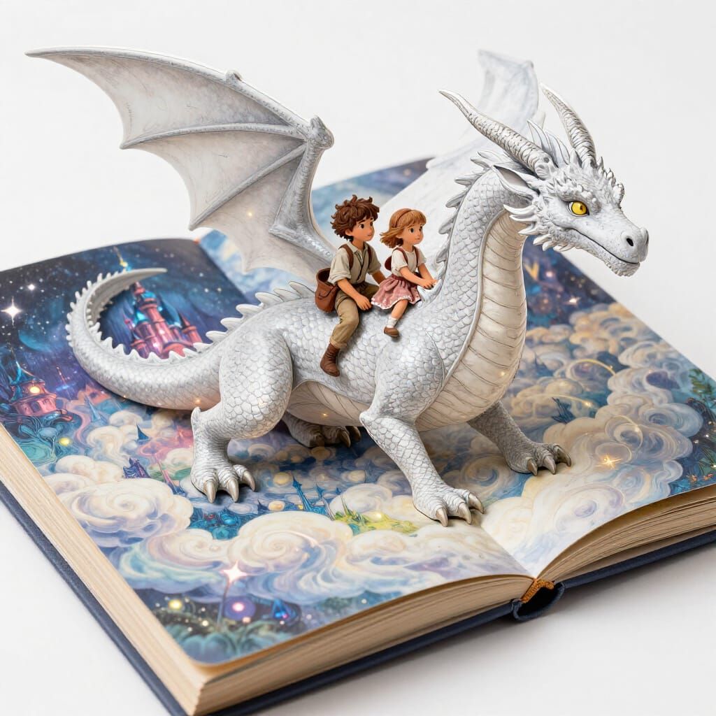 Easily create magical pop-up book scenes with children and dragons using our free AI generator.