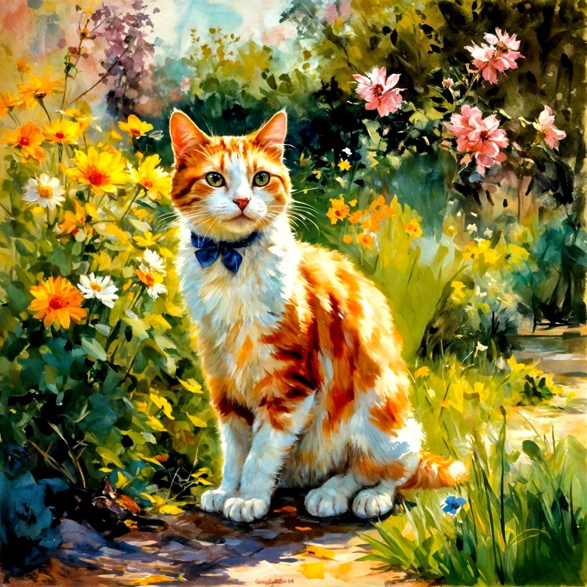 Create your own playful cat images in the style of Esther Pissarro with our free AI image generator