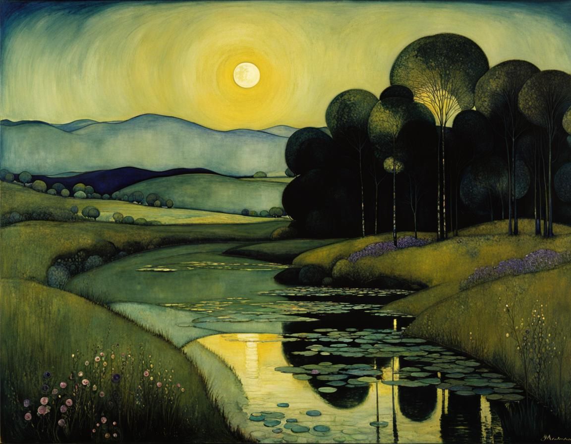 Easily generate your own stunning night blue landscapes with a touch of violet, inspired by famous artists