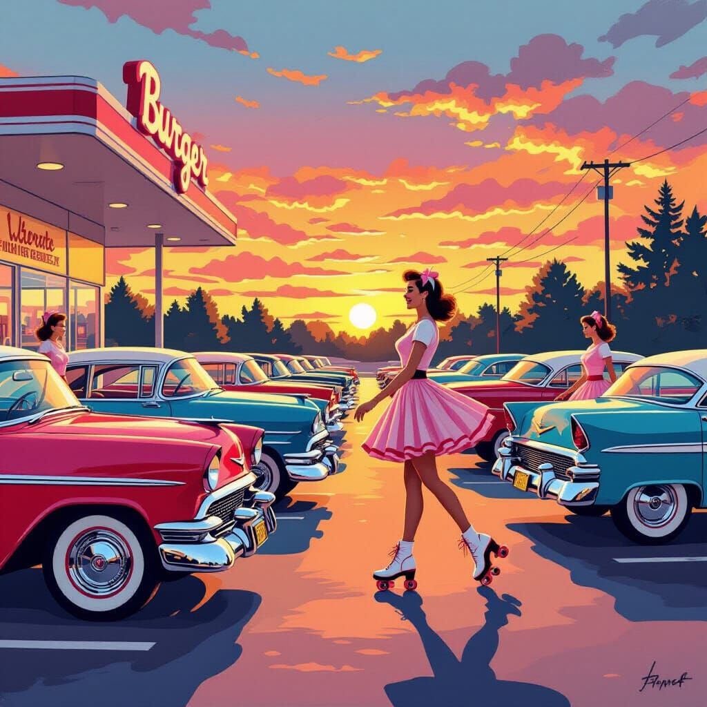 Easily create your own retro 1950's style drive-in images with our free AI image generator
