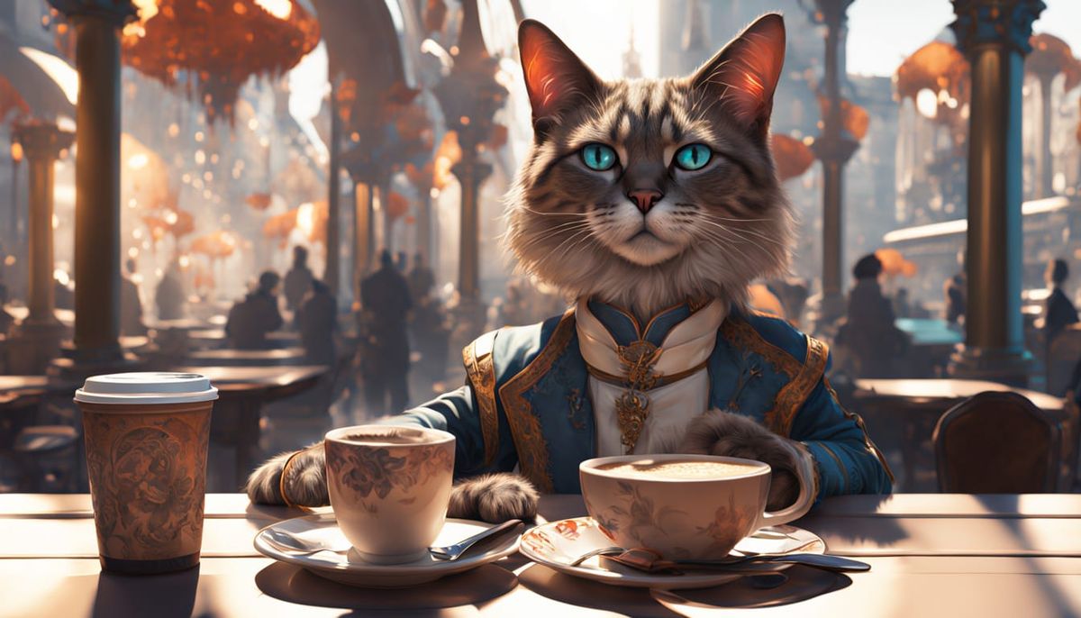 Generate unique images of cats in cafes, complete with cappuccinos and treats. Try our free AI image generator now!