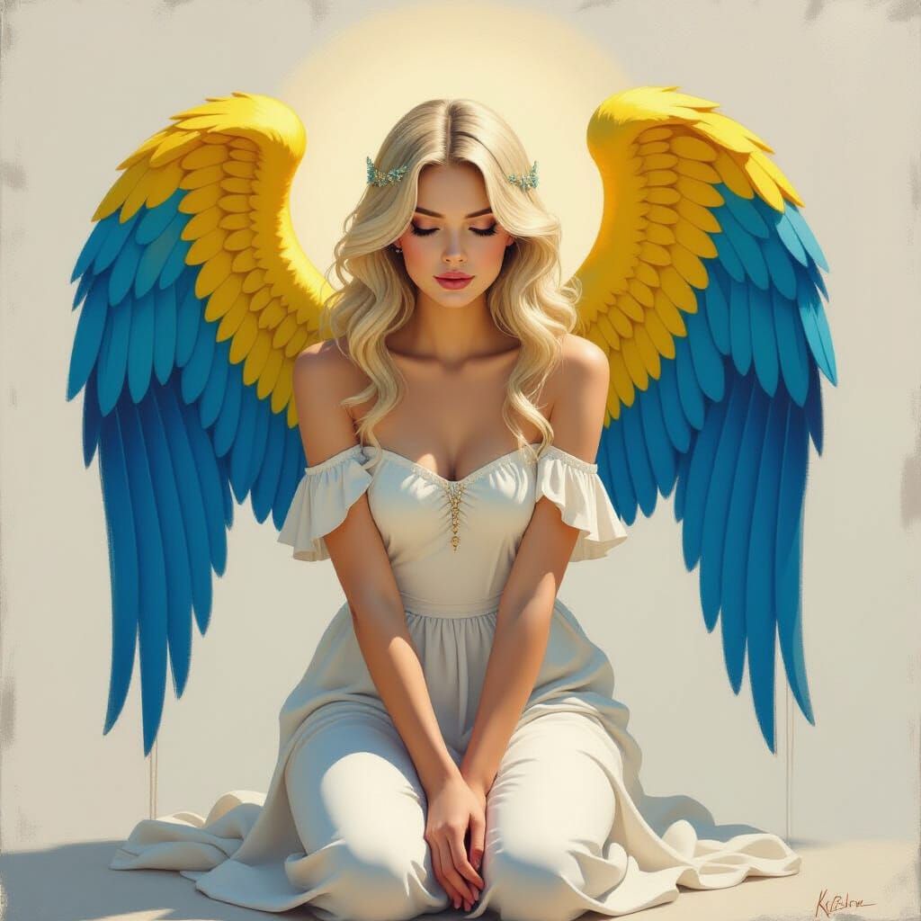 Generate your own unique angelic figures, featuring feathered wings and blonde hair, with our free and easy AI tool.