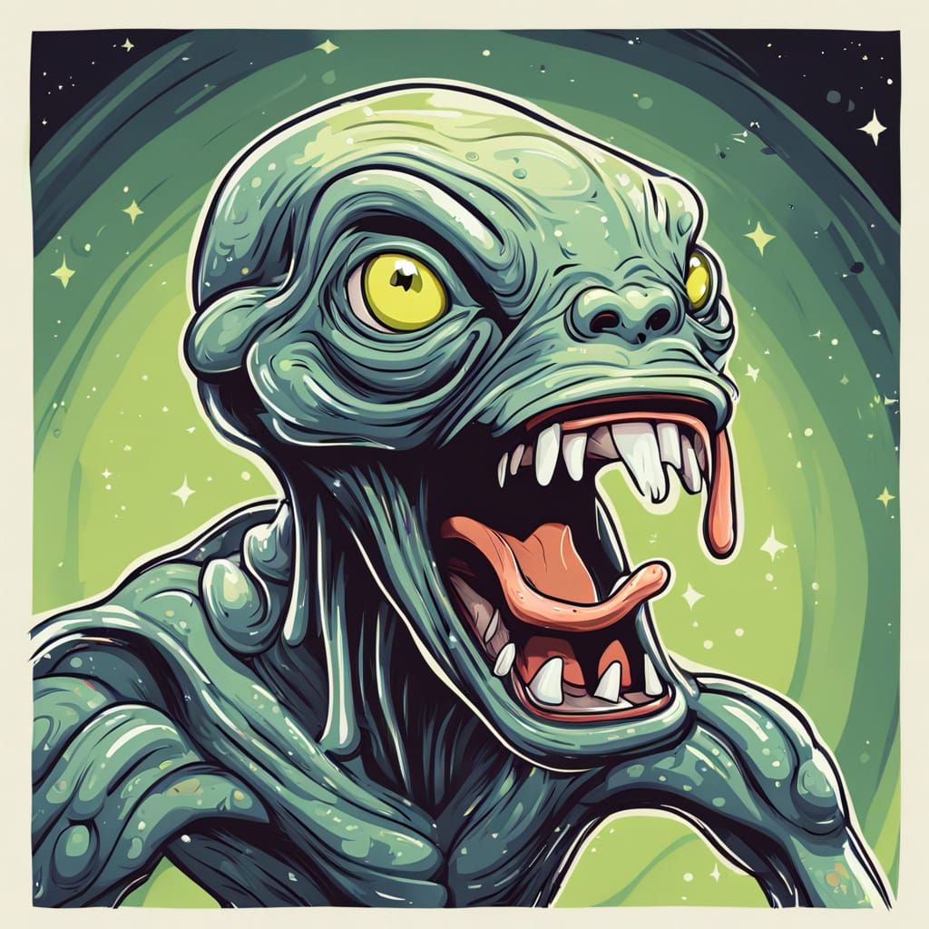 This image is a cartoon representation of an alien taking a leisurely yawn, showcasing its unique and playful character design.