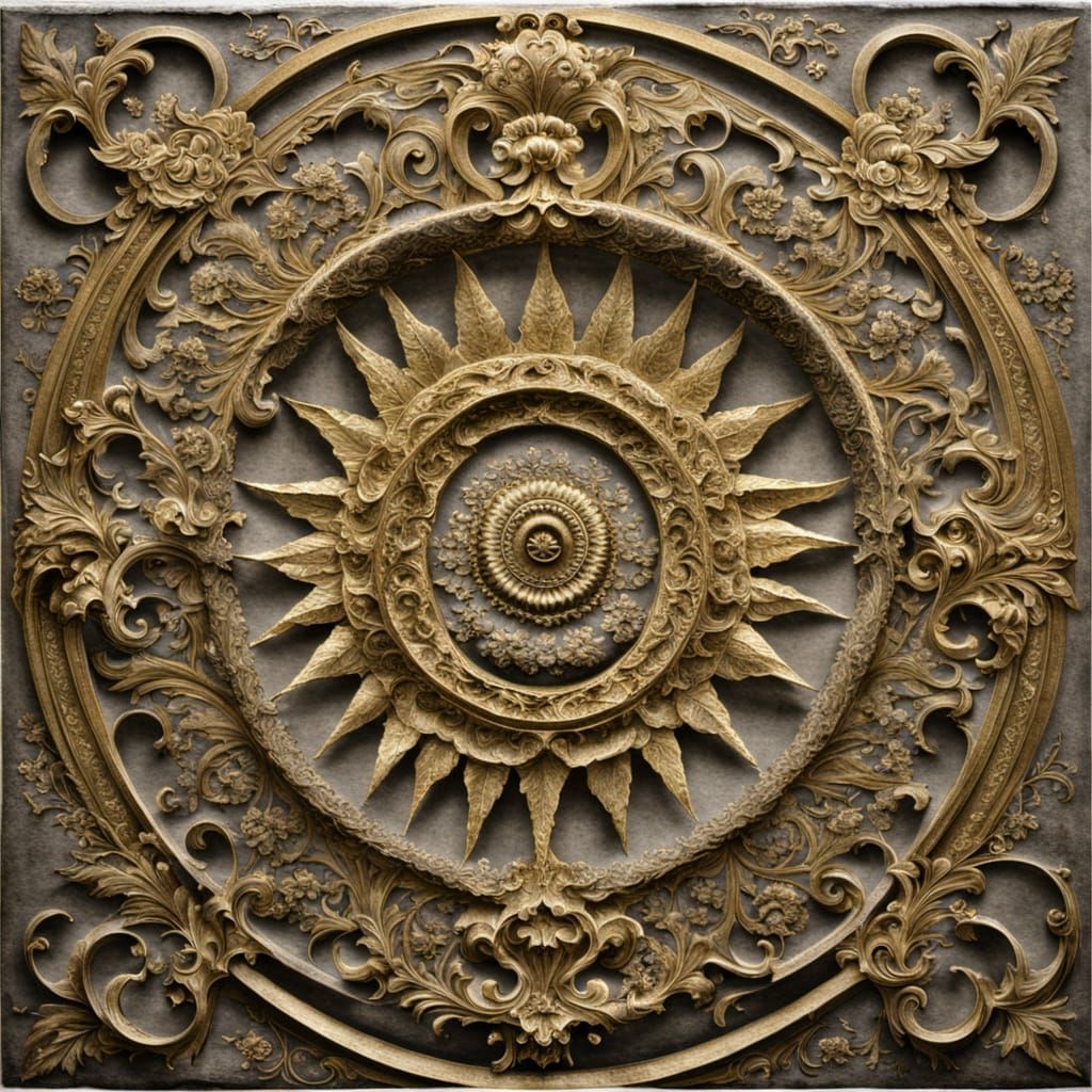 This image depicts a stunning vintage photograph of concrete art from the 1900s, adorned with gilded accents, capturing a bygone era's aesthetic