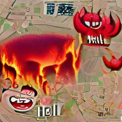 This image shows a depiction of hell. The AI image generator created this picture when given a very simple prompt about hell.