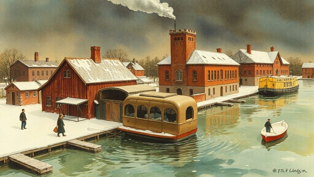 This image depicts a whimsical illustration of a historical event, featuring vibrant watercolor colors and a nostalgic aesthetic reminiscent of classic storybooks.