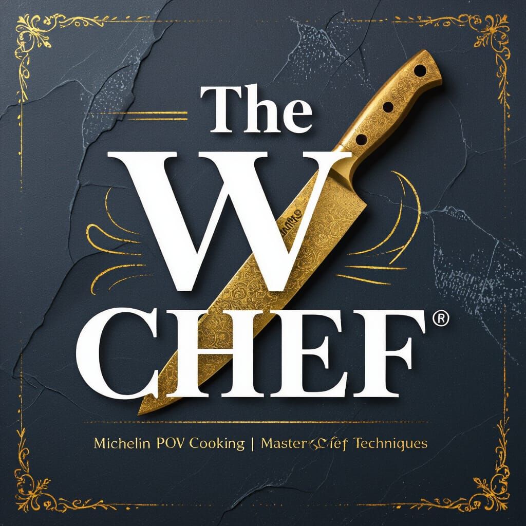 This image shows a sleek banner design for a Michelin-style cooking channel. It features a dark textured background, elegant gold accents, and modern typography with a clean, professional aesthetic.