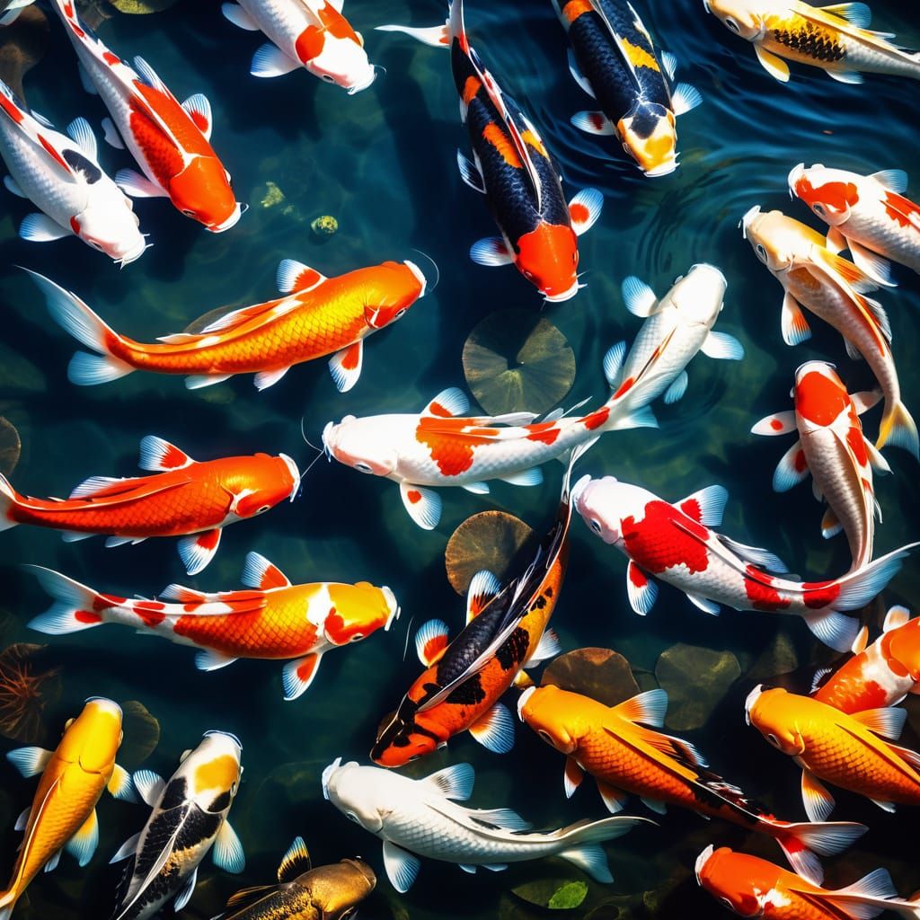 Create your own breathtaking aerial views of vibrantly colored koi fish with our free AI image generator.
