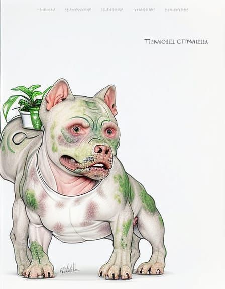 This image shows a futuristic, cyberpunk-inspired creature with human, canine, and plant elements, blending together in a bizarre, otherworldly form.
