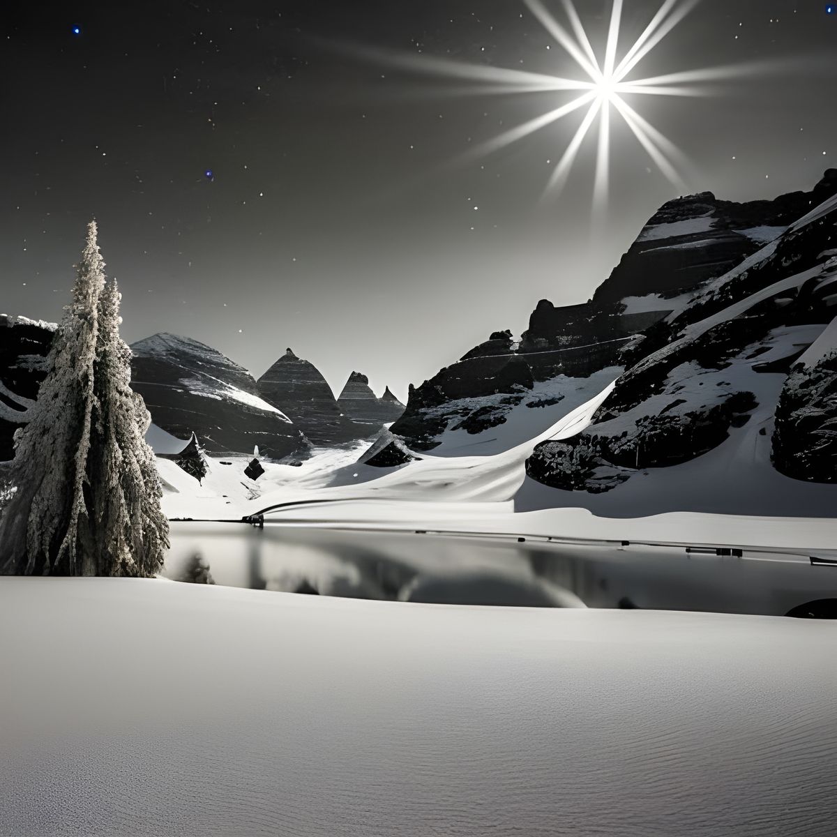 Retro Black and White Poster in Vintage Style “Night Landscape with Christmas Star"