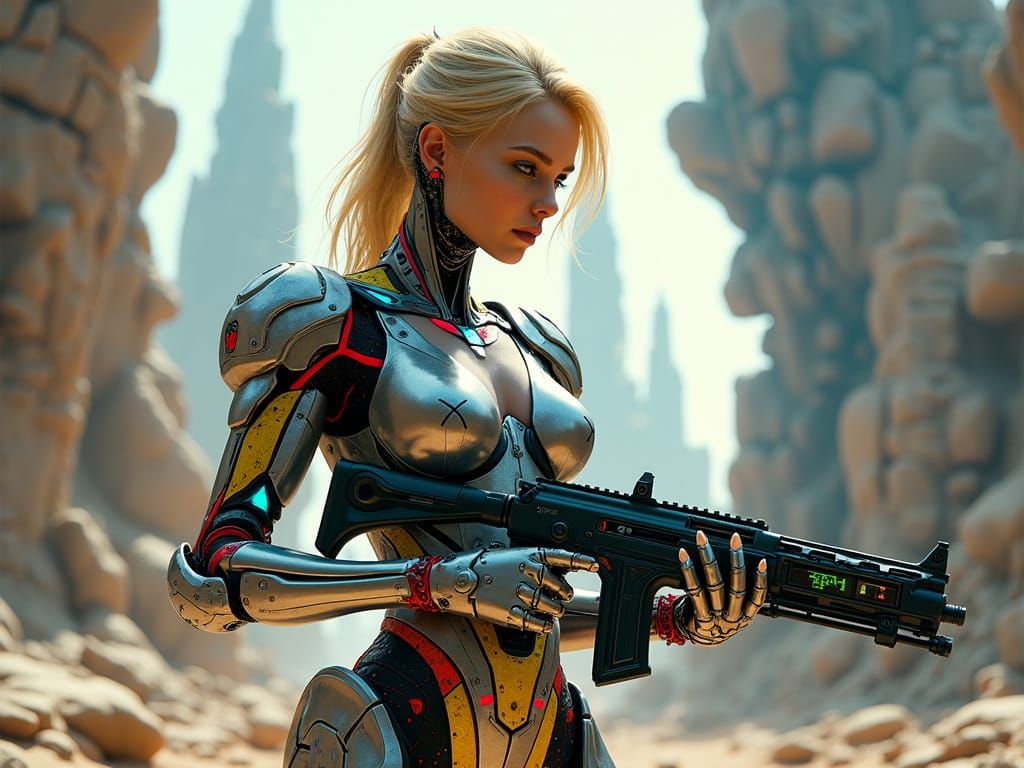 Easily generate stunning blonde cyborg women images with our free AI image generator. Customize your creations!