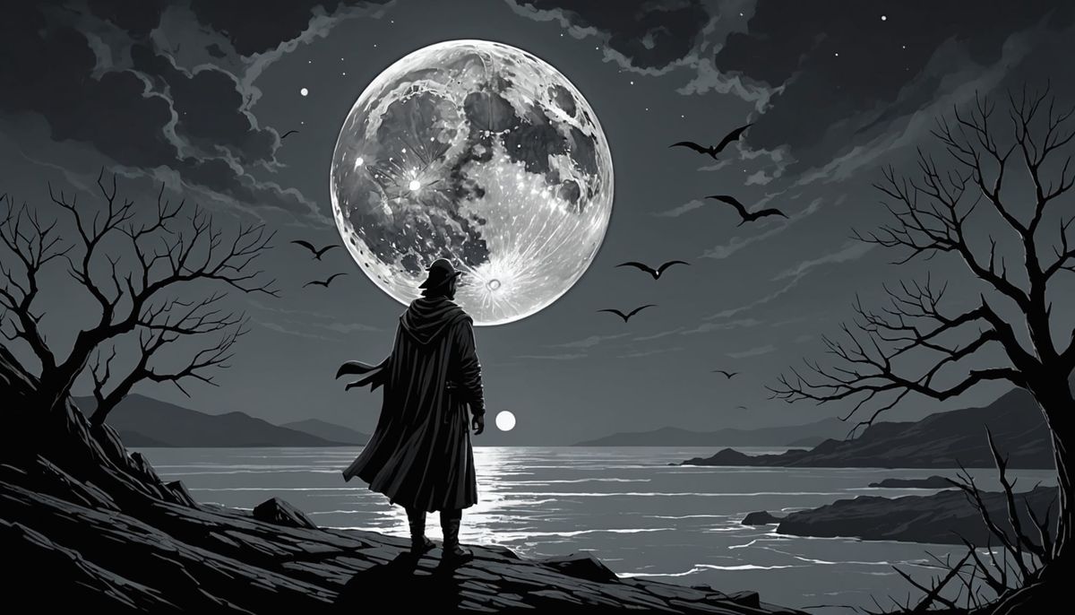 A haunting image of surreal landscapes, where dreams are lost in shadows, and the wind whispers secrets of dark betrayals. A minimalist, high-contrast sci-fi scene with intricate details, set against a volumetric, matte background.
