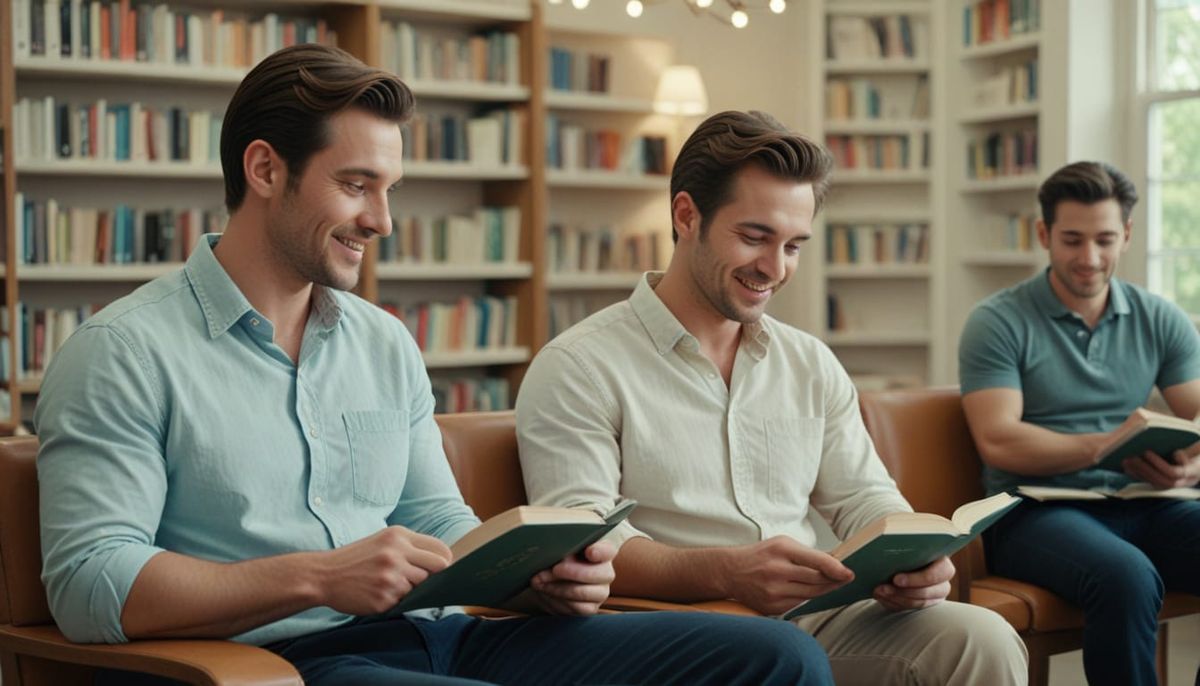 This image captures a vintage cinematic scene with vibrant film colors. A man and woman sit with affectionate eyes in a pastel-hued library, evoking youthful spring vibes.