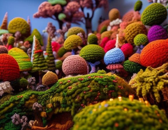 Unleash your imagination and craft unique miniature crochet fantasy scenes with our easy-to-use AI generator.