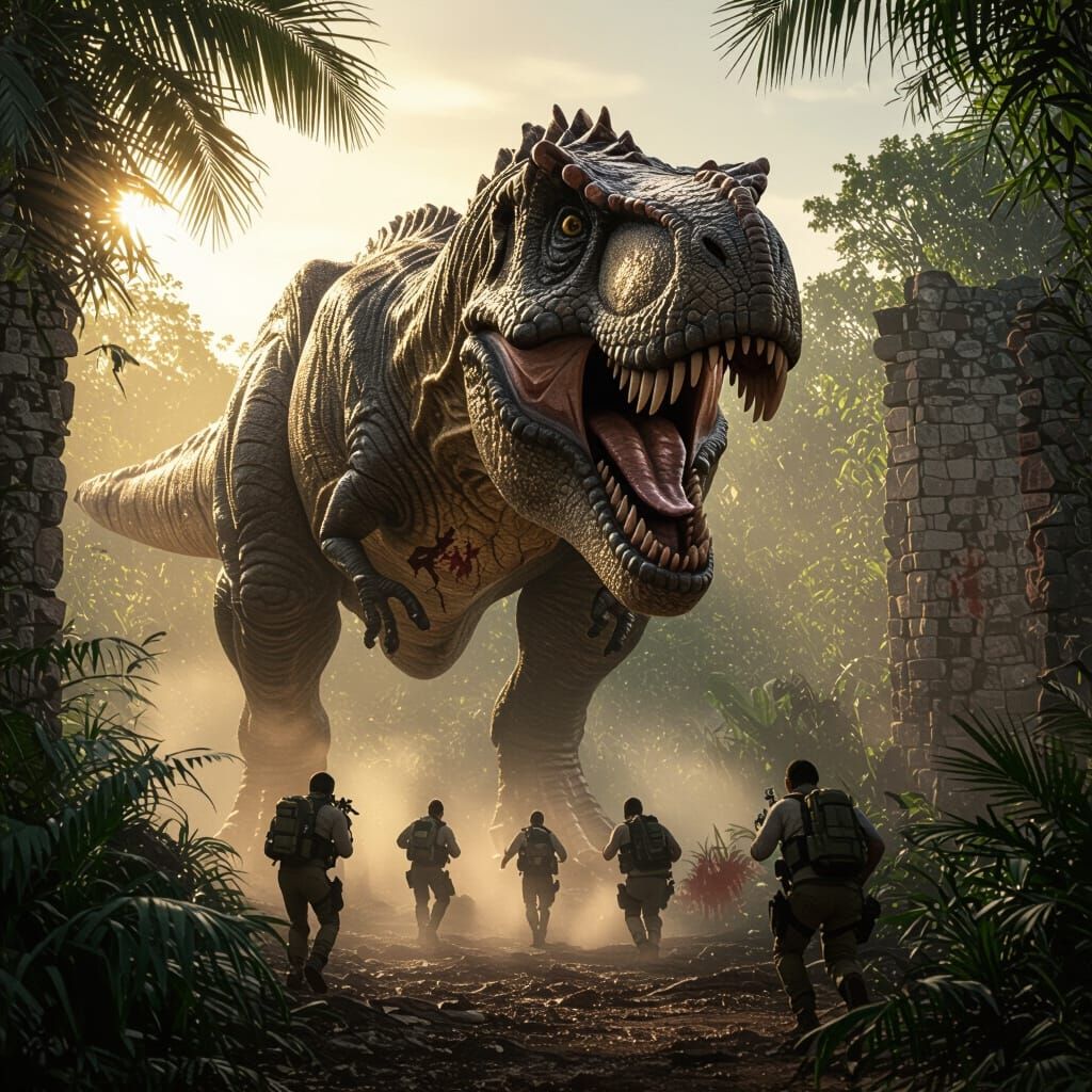 Generate stunningly realistic dinosaur images in seconds. Easily create your own cinematic jungle adventures with our free AI tool.