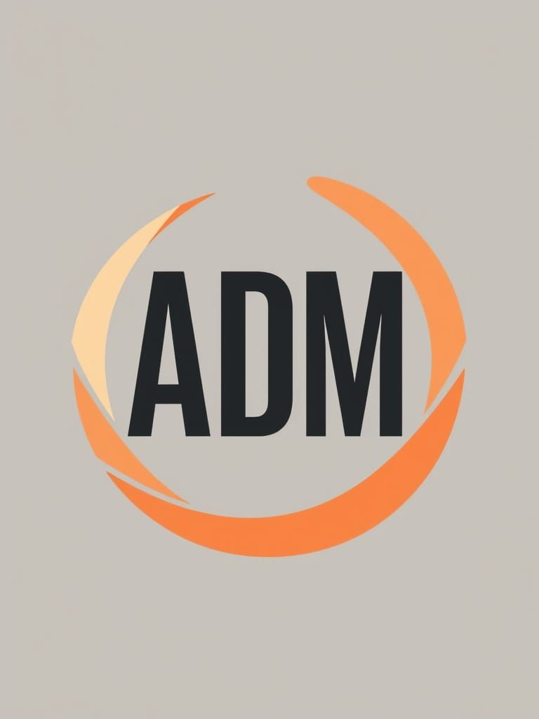 This image shows a graphic designer's logo featuring gestural, organic shapes and the letters 'ADM' in Titillium Web font. The design incorporates soft geometric elements in a muted color palette.