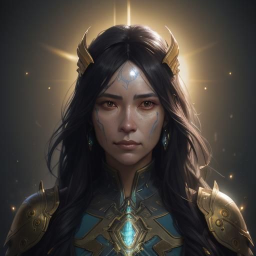 This image shows a hyperdetailed head and shoulders portrait of fertility spirits. The digital art features dynamic lighting, intricate details, and triadic colors in a volumetric style.