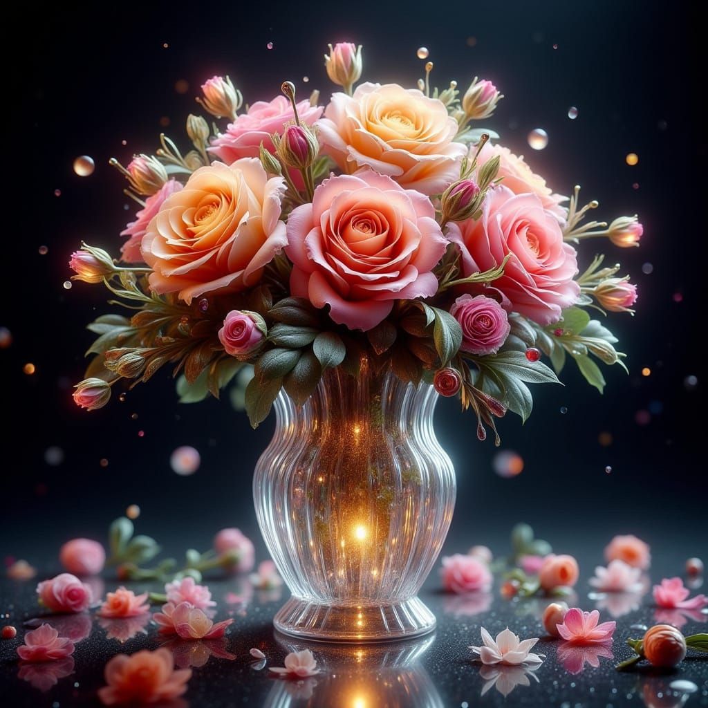 Easily generate stunning images of crystal vases with colorful roses. Try our free AI tool now!