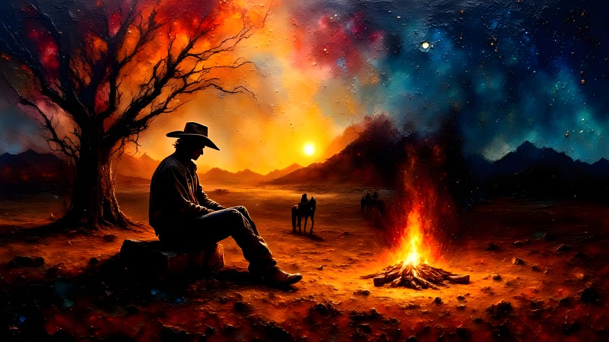 #campfire#cowboy#horse#sunset#impasto
