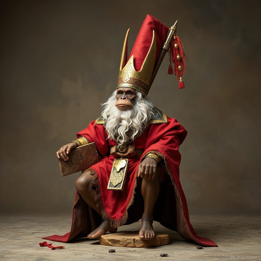 This image features an AI-generated artwork depicting Labubu Force Majeure, Bonjuju Eleggua Crone, in a style reminiscent of Greece Monkees, showcasing unique character designs.