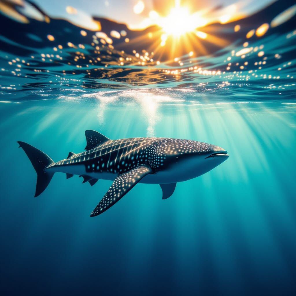 Generate your own elegant whale shark images with our free and easy AI art generator. Realistic and cinematic.