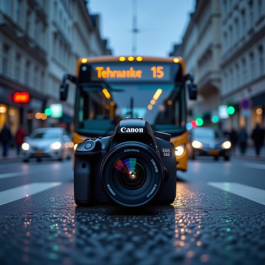 This image captures a busy street scene where vehicles move forward through a crowd, shot in a techno-inspired style with sharp focus and natural lighting.