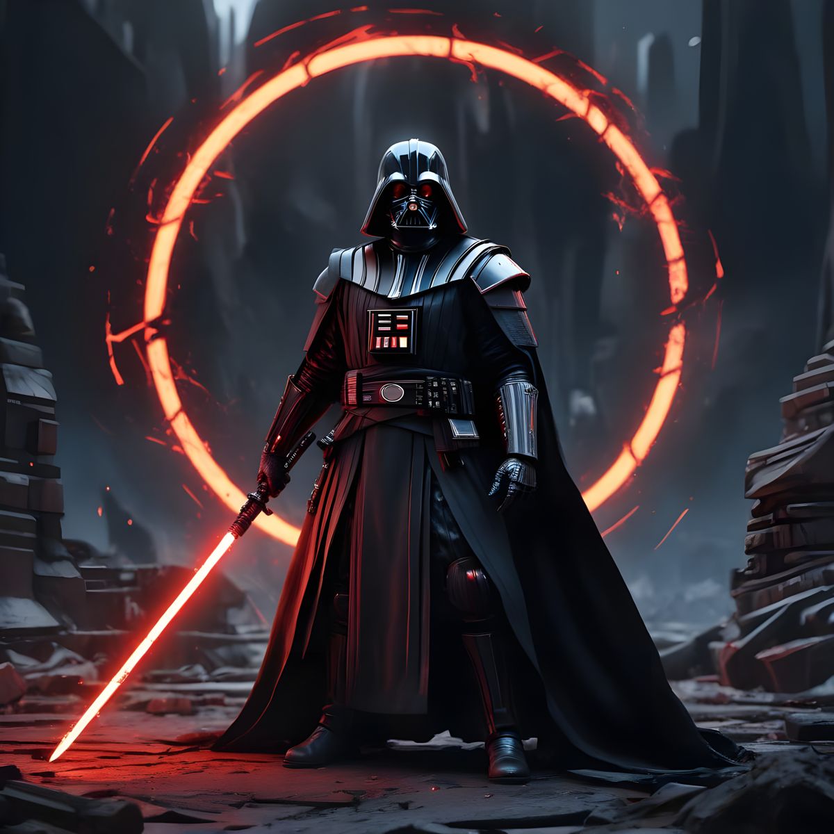 This image shows a dramatic logo design concept. A dark eclipse is split by a red lightsaber slash, revealing the Samsung logo. Digital art with intricate details and complementary colors.