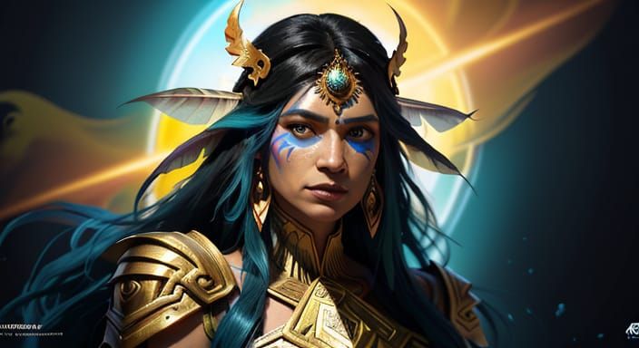 This image shows a hyperdetailed head and shoulders portrait of an Indian Fairy Goddess. The artwork features dynamic and volumetric lighting, with vibrant colors in a fantasy style.