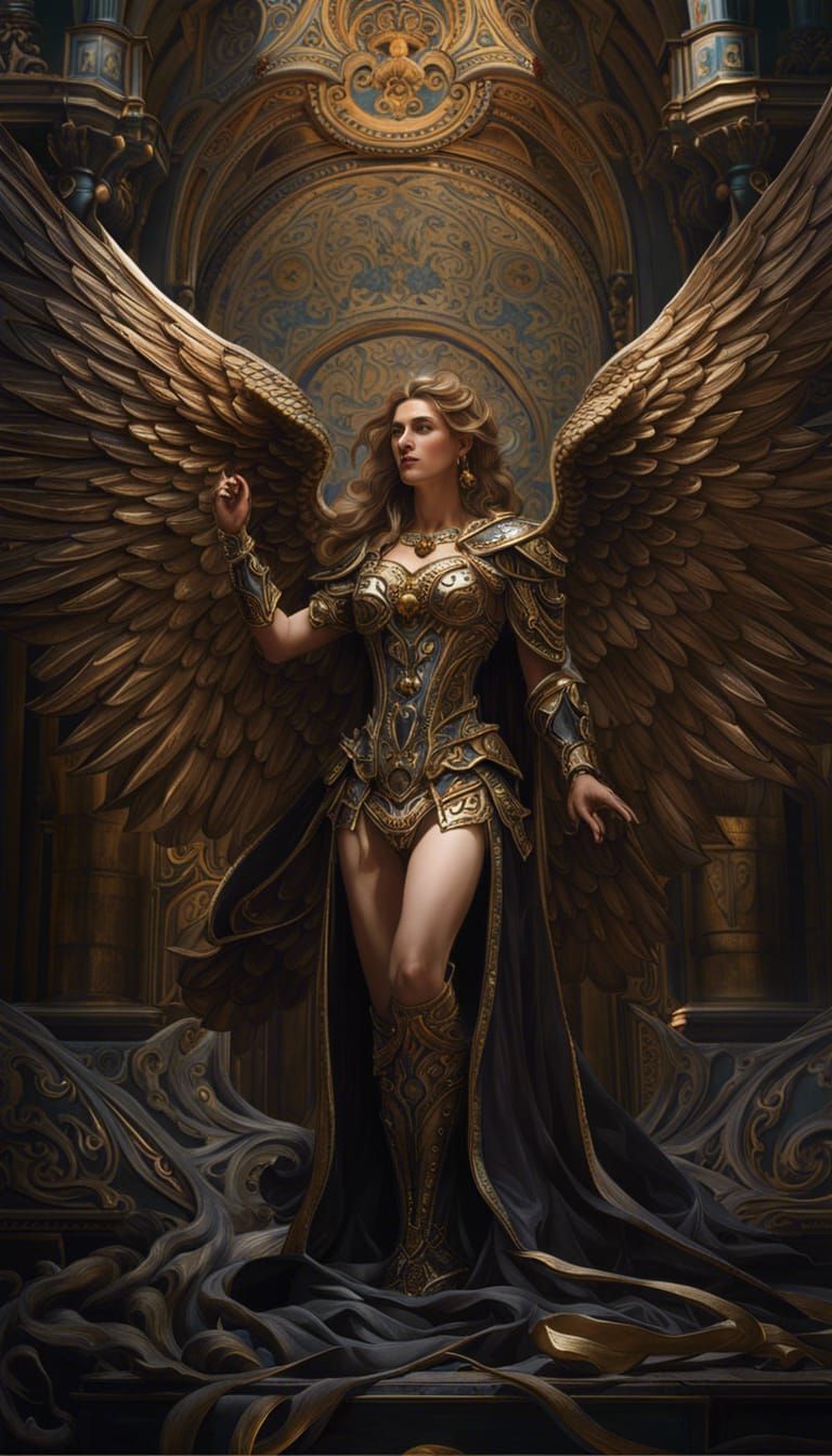 Sinister angel Knight girl, beautiful wings, beautiful background, black color armor, blood outlines, by ashley wood and yuji shinkawa and charles vess and Don Davis, anatomy study, perspective sketch, scrawled, scribble, intricate, detailed, vibrant, Bold, Saturated