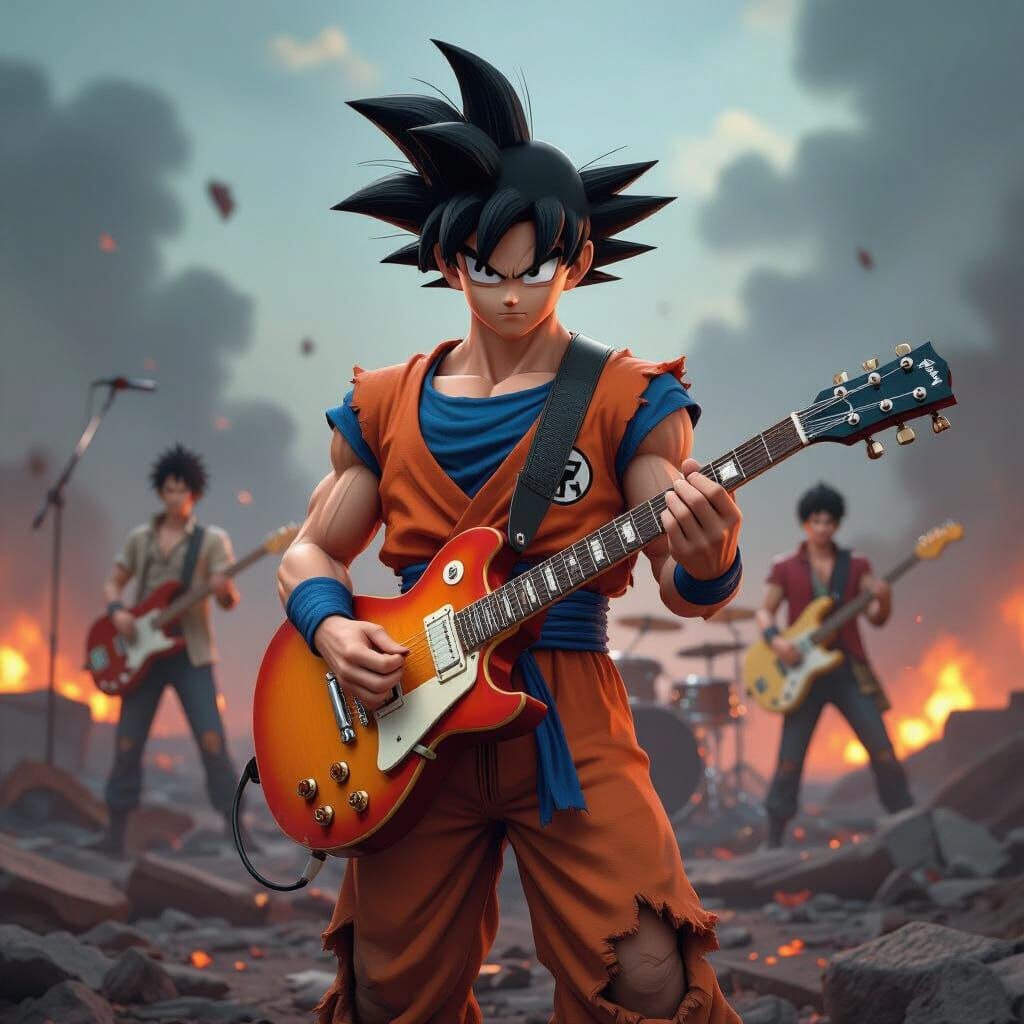 Generate realistic Goku images with a guitar, in a unique style. Try our free AI image generator now!
