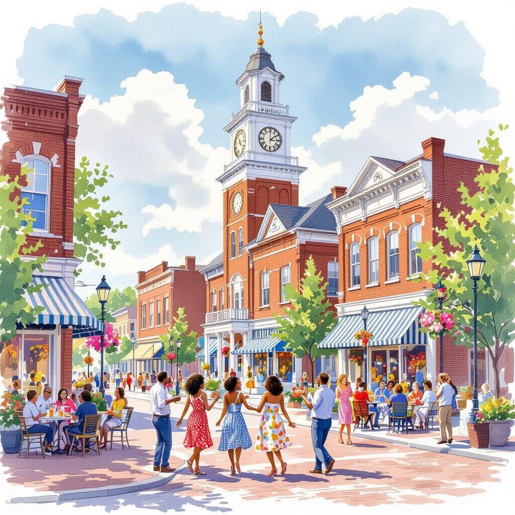 Easily generate your own historic watercolor illustrations of Main Street in Suffolk, Virginia with our free AI tool.