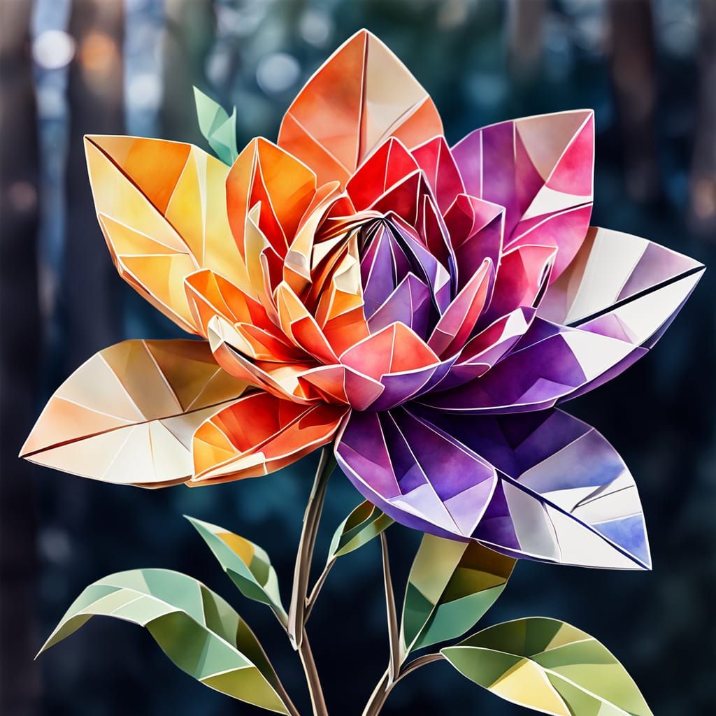 A stunning watercolor painting of a delicate origami flower. This high-resolution image showcases vivid colors and impressionistic techniques, reminiscent of art seen on DeviantArt and Artstation.