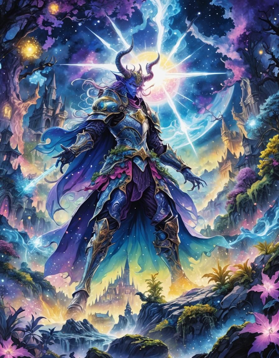 Epic Josei Manga Style Wizard Knight in Cursed Armor Casts S...