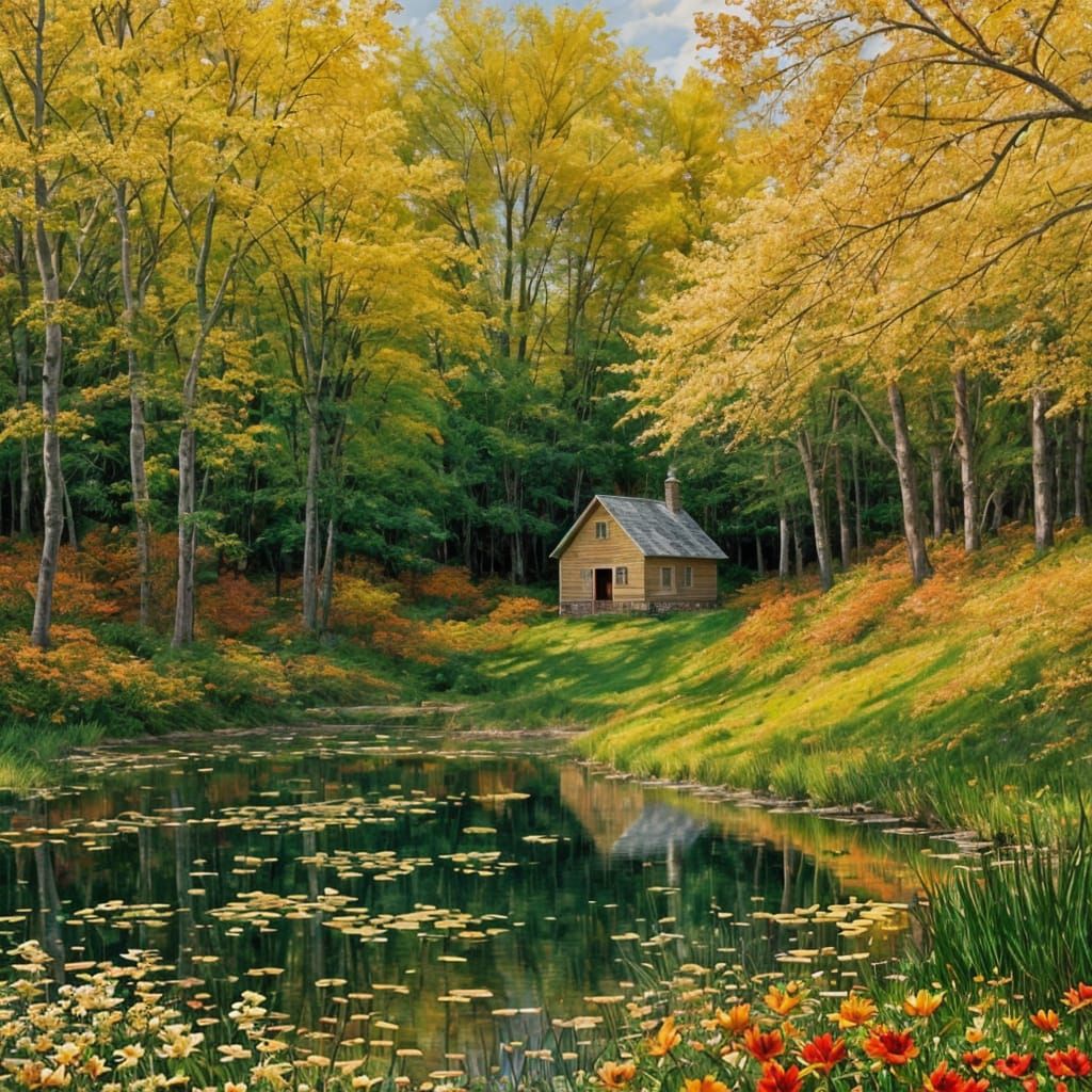 Create your own peaceful pond scenes with dogwood trees. It's free and easy with our AI image generator!