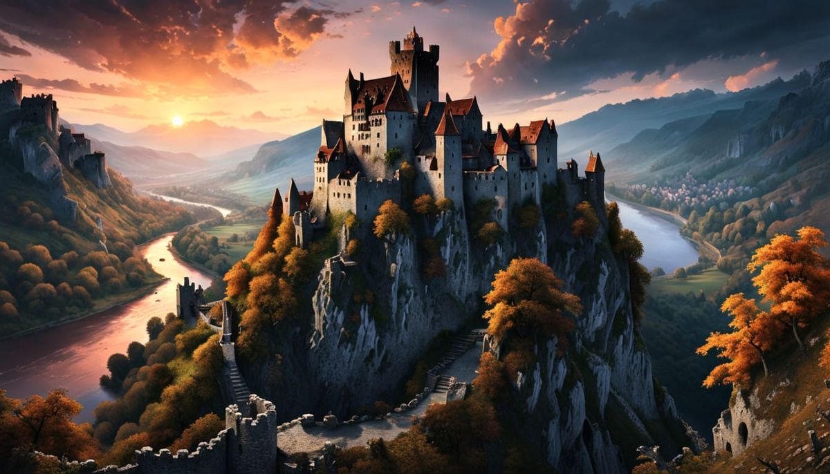 Easily generate your own stunning hyperreal images of ruined castles and breathtaking scenery with our free AI image generator
