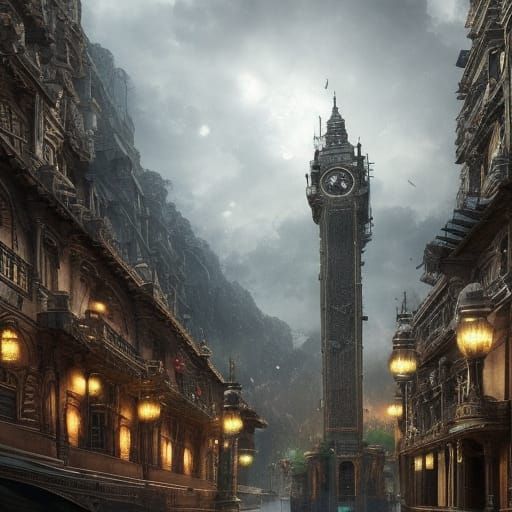 This image shows a dramatic digital painting of a daily winner. The artwork is intricately detailed with a maximalist and cinematic aesthetic, creating a stunning and atmospheric scene.