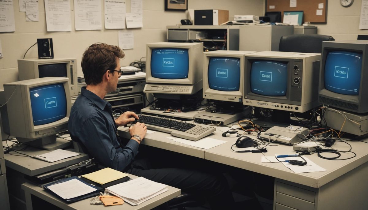 This AI-generated image visualizes the concept that while humans make mistakes, computers can magnify those errors to a significant degree. It explores the intersection of human fallibility and technological power.
