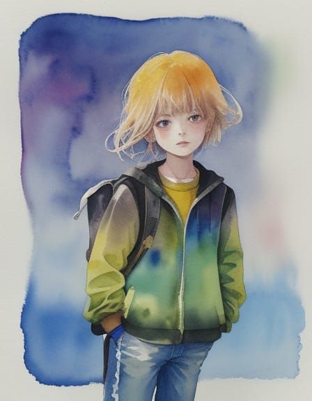 This image depicts a liminal space rendered in a kidcore style. The artwork uses watercolor techniques to create a dreamlike and unsettling atmosphere.