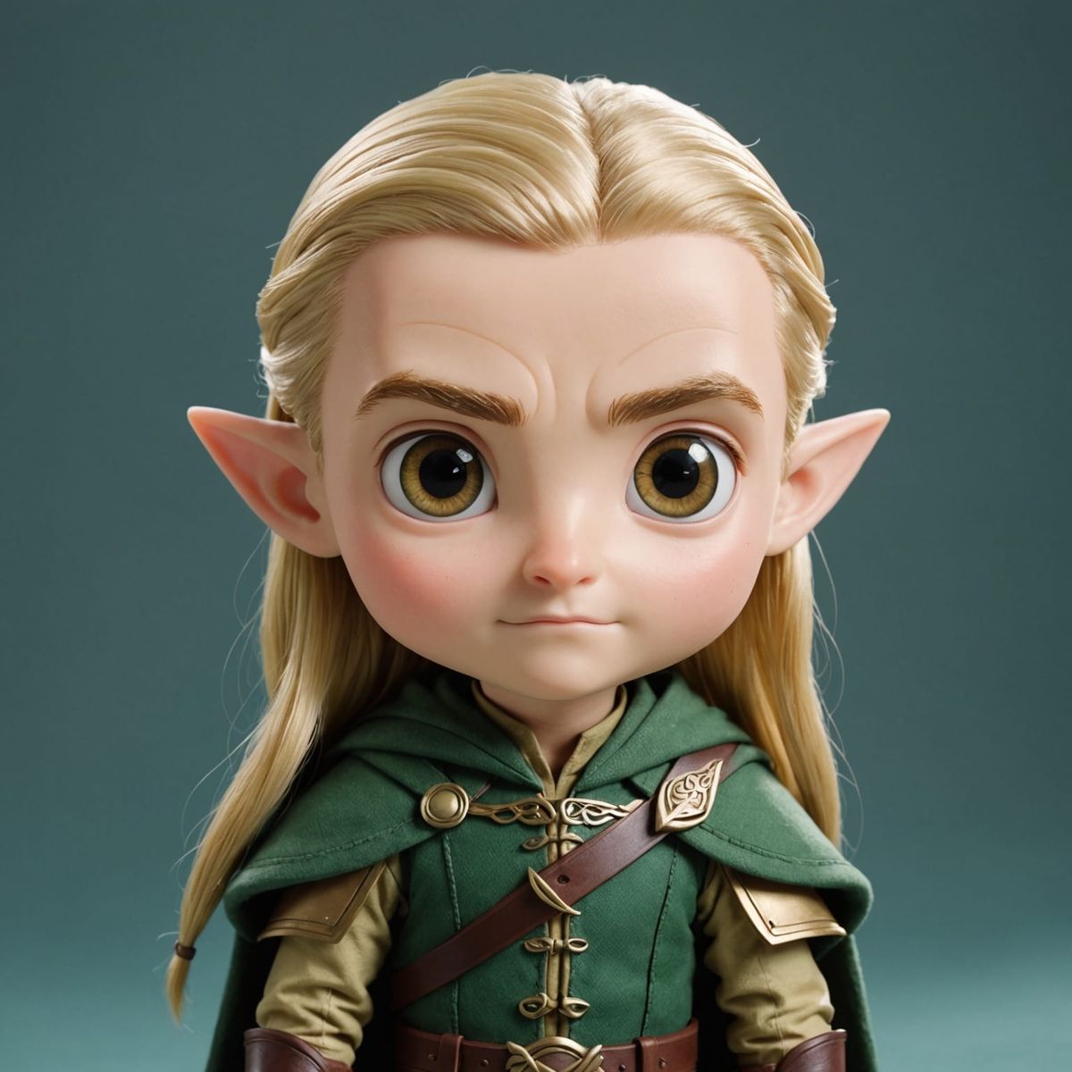 This image features a cute and endearing depiction of an elf archer, with exaggerated facial features and a playful aesthetic, blending fantasy and kawaii elements.