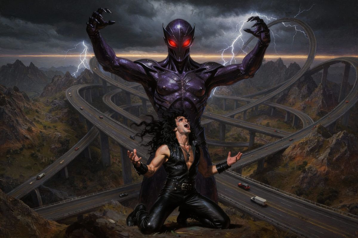 Created for challenge on 1994th music. It was interesting expiriense to make those images and do them as a puzzle together. Espessialy the monster Murray (AI didn't knew him and I tried to describe him mostly close to DIO's original design).