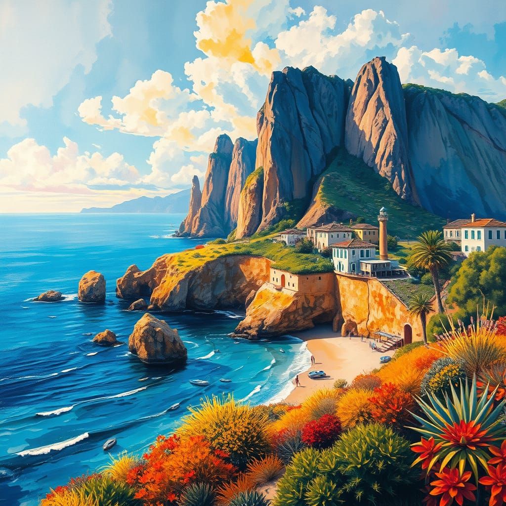 This stunning image showcases a hyperdetailed landscape of dreamy vacations, blending vibrant gouache watercolors with charcoal undertones and thick impasto textures, reminiscent of Impressionist maximalist art with high contrast and polychromatic colors.