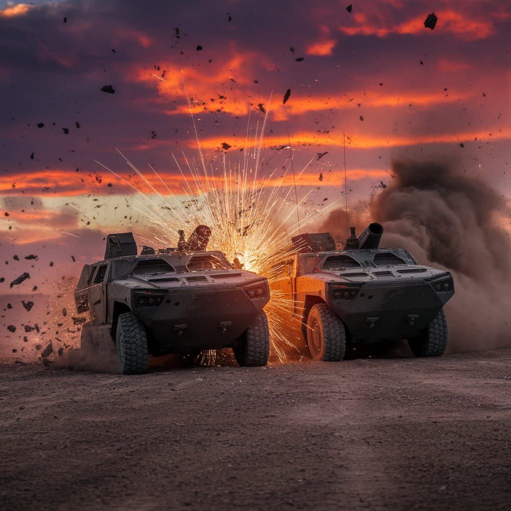 Make your own high-octane armored vehicle showdown images. It's free and easy with our AI image generator!