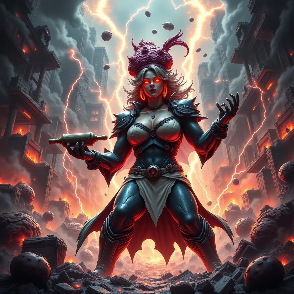 Now she roams the streets by night, her apron tattered, her rolling pin enchanted with dark pastry magic. Wherever there’s joy in baking... she’s there. Lurking. Waiting. Swapping ingredients. Cracking eggs into shoes. Whispering “Your scones are dry” into the ears of sleeping chefs.