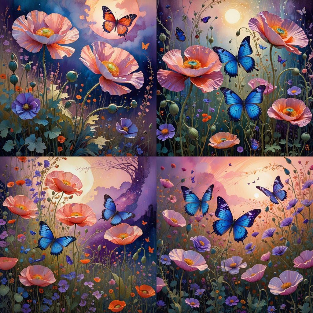 Easily generate your own symbolist art with poppies and prairies using our free AI image maker