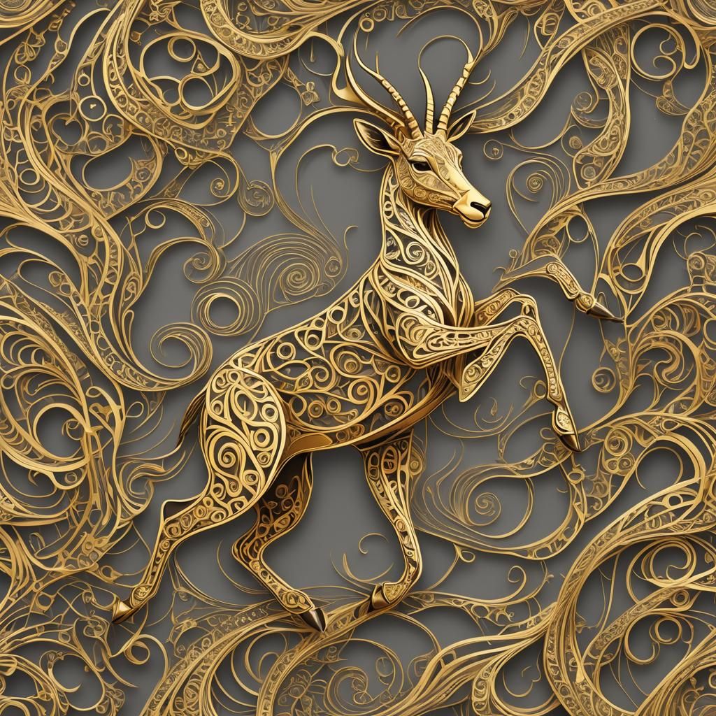 This image shows a gazelle winning a gold medal in an Olympic track race. The artwork features abstract vector fractal elements and 3D shading to create an abstract aesthetic.