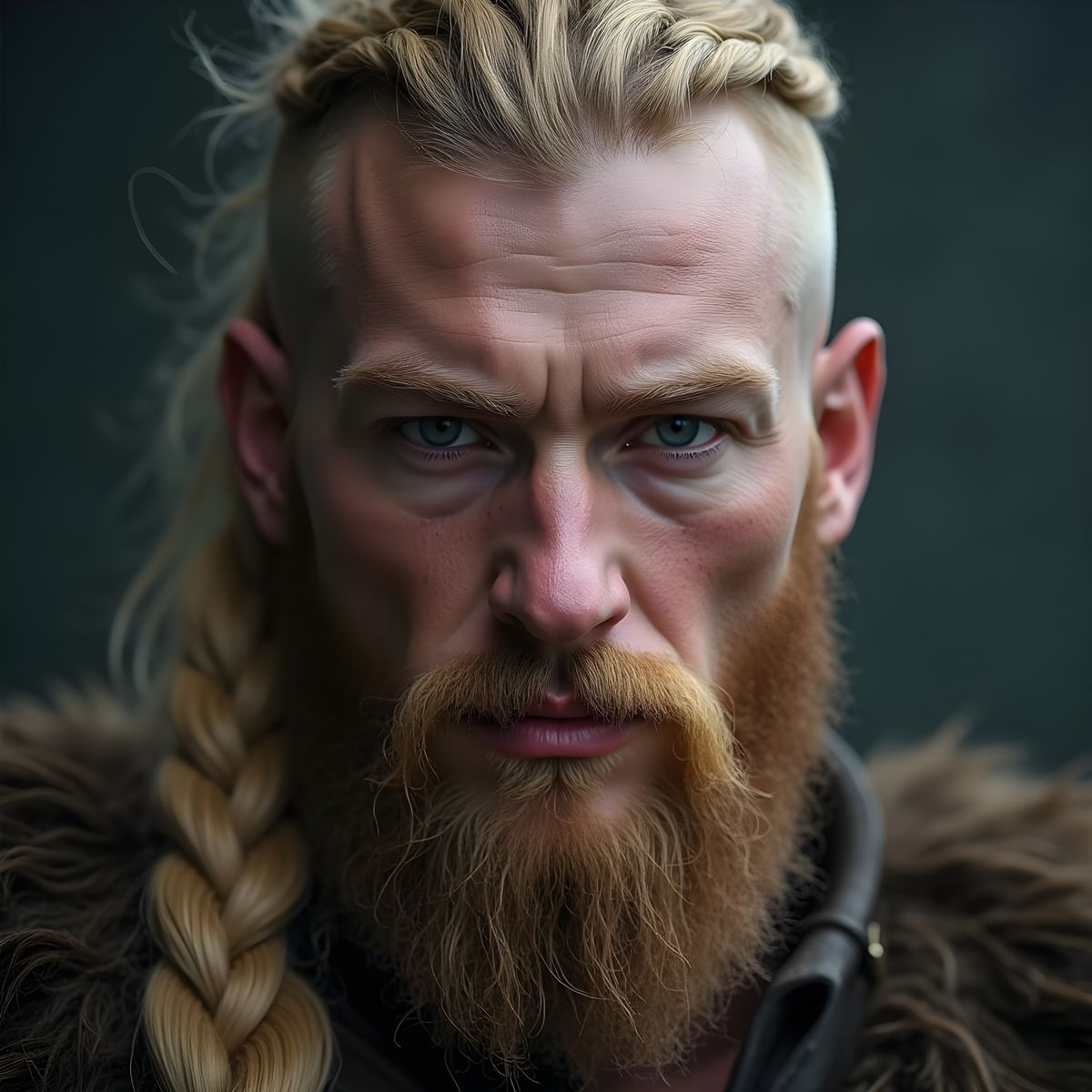 This image shows a fierce Viking warrior with a braided hairstyle, capturing the essence of ancient Scandinavian culture.