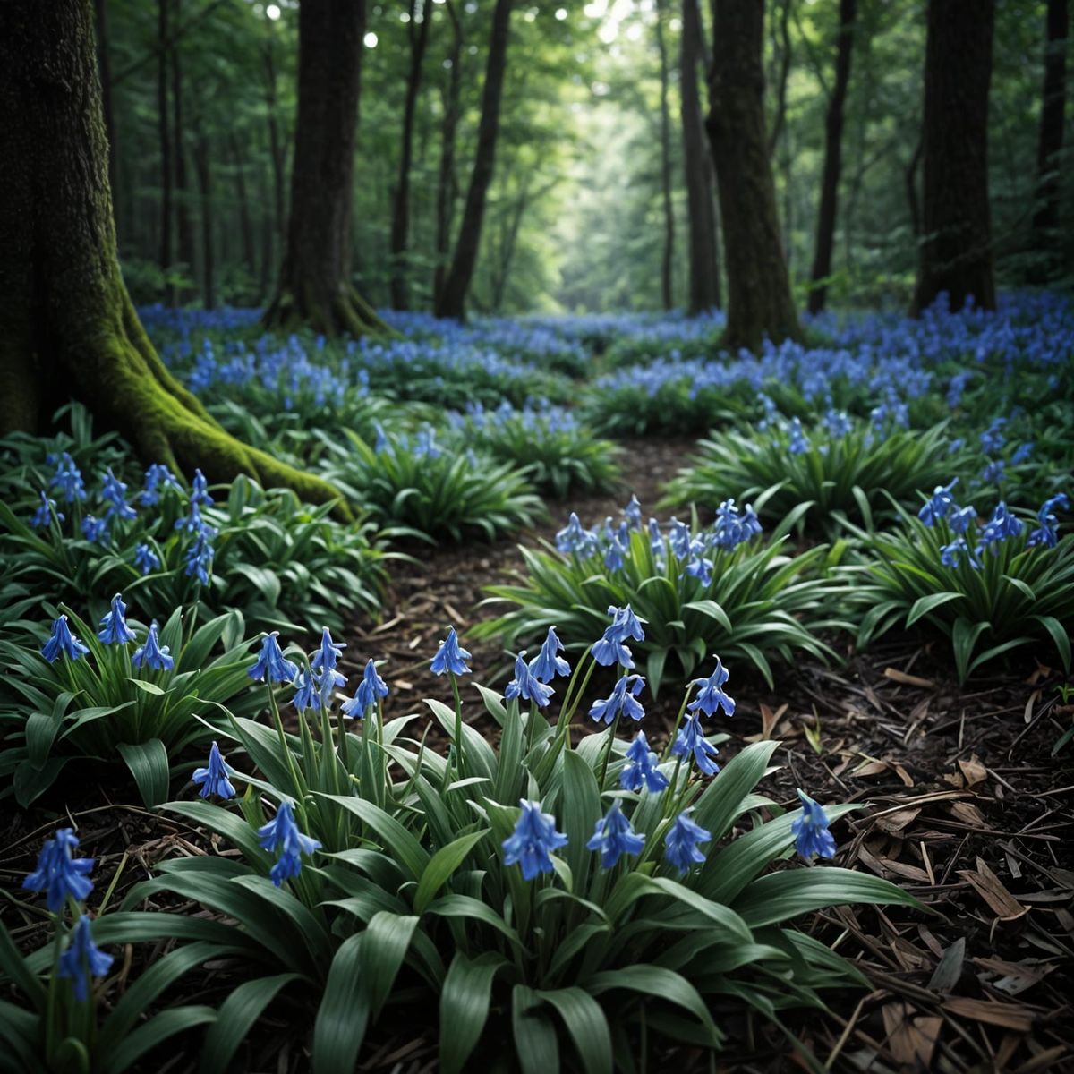 Watercolor-inspired, hyperrealistic, bluebells and hyacinths on the forest floor, intricate details rendered with breathtaking sharpness and precision, shot in a dramatic, cinematic lighting setup, 64 megapixels of photorealistic quality, subtle misty overtones, reminiscent of the styles of botanical ...