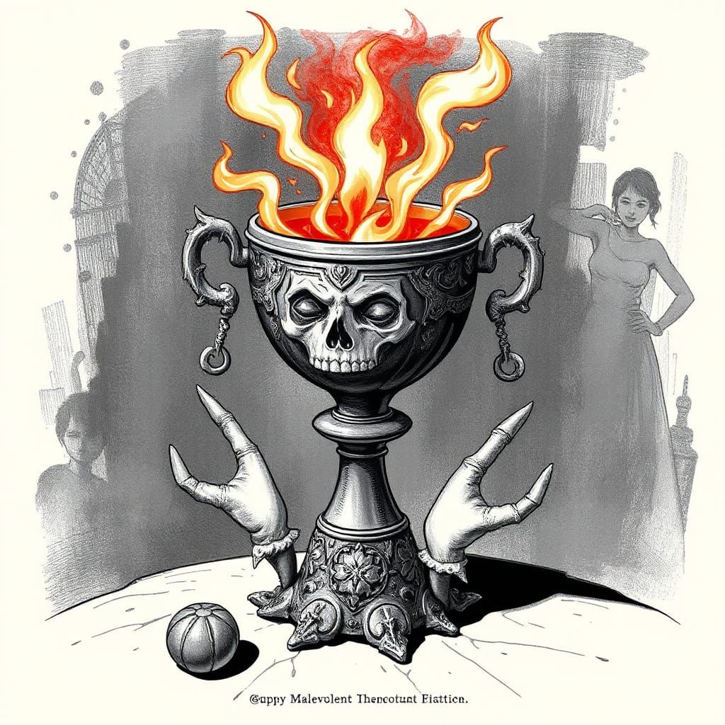 This image depicts a menacing chalice used for dark rituals. The design evokes a sense of forbidden magic and ancient power.